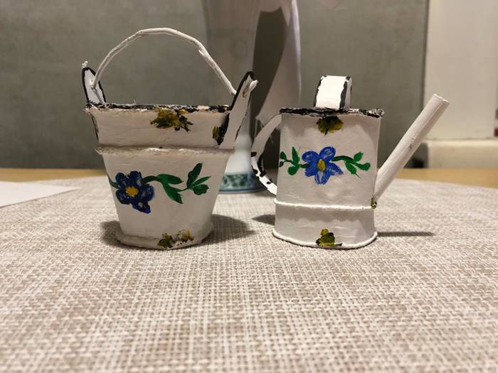 "огород" ведёрко и лейка из бумаги и пва