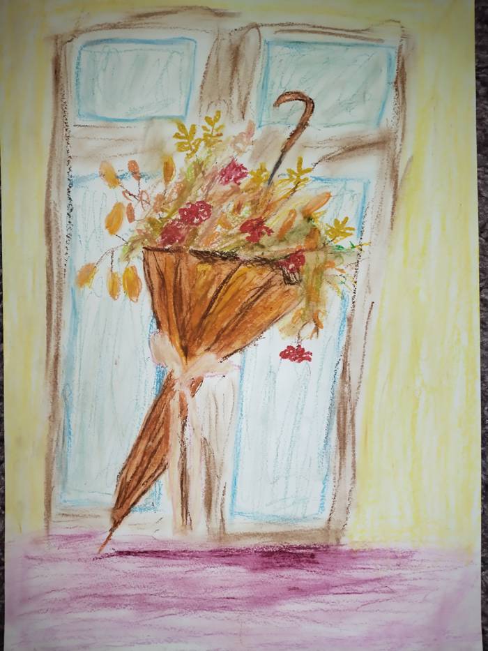 Осенний зонтик. Масляная пастель.